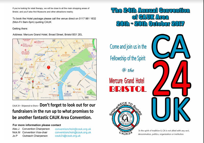 Disclaimer: Some of the items contained in these pages are published with permission of CA World Services, Inc., this does not imply endorsement of the web site by the CA World Service Conference or the CA World Service Office. The information provided within this site is intended to be a convenience for those who visit our site. Such inclusion does not constitute or imply any endorsement, by or affiliation with, the CA Scotland Area.