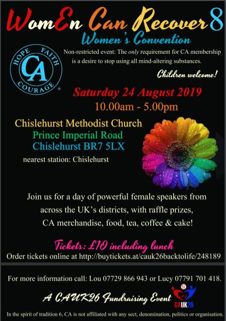 Disclaimer: Some of the items contained in these pages are published with permission of CA World Services, Inc., this does not imply endorsement of the web site by the CA World Service Conference or the CA World Service Office. The information provided within this site is intended to be a convenience for those who visit our site. Such inclusion does not constitute or imply any endorsement, by or affiliation with, the CA Scotland Area.