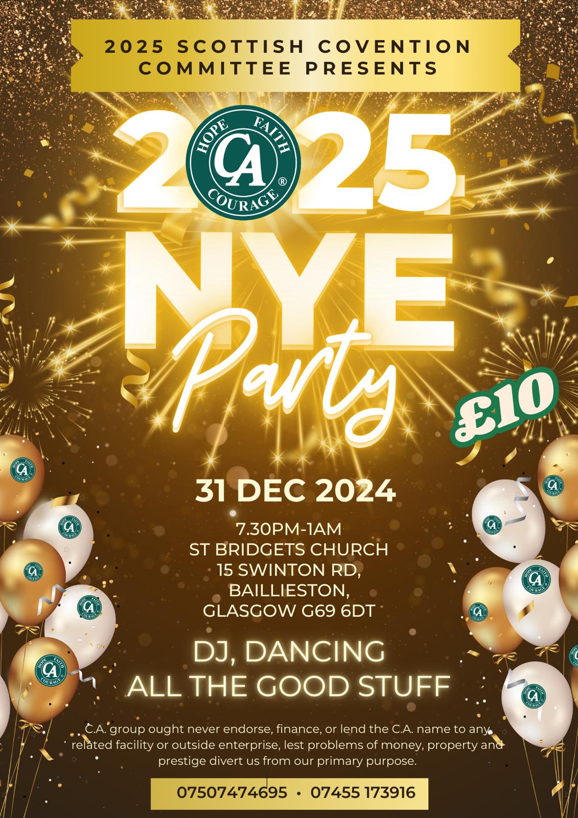 Disclaimer: Some of the items contained in these pages are published with permission of CA World Services, Inc., this does not imply endorsement of the web site by the CA World Service Conference or the CA World Service Office. The information provided within this site is intended to be a convenience for those who visit our site. Such inclusion does not constitute or imply any endorsement, by or affiliation with, the CA Scotland Area.